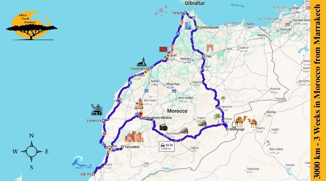A 3-week itinerary goes beyond highlights. It includes less touristy destinations such as Taroudant, Sidi Ifni, Mirleft, and Oualidia, while still covering must-see locations like Marrakech, Fes, and the Sahara. This creates a more balanced, immersive, and culturally rich journey.